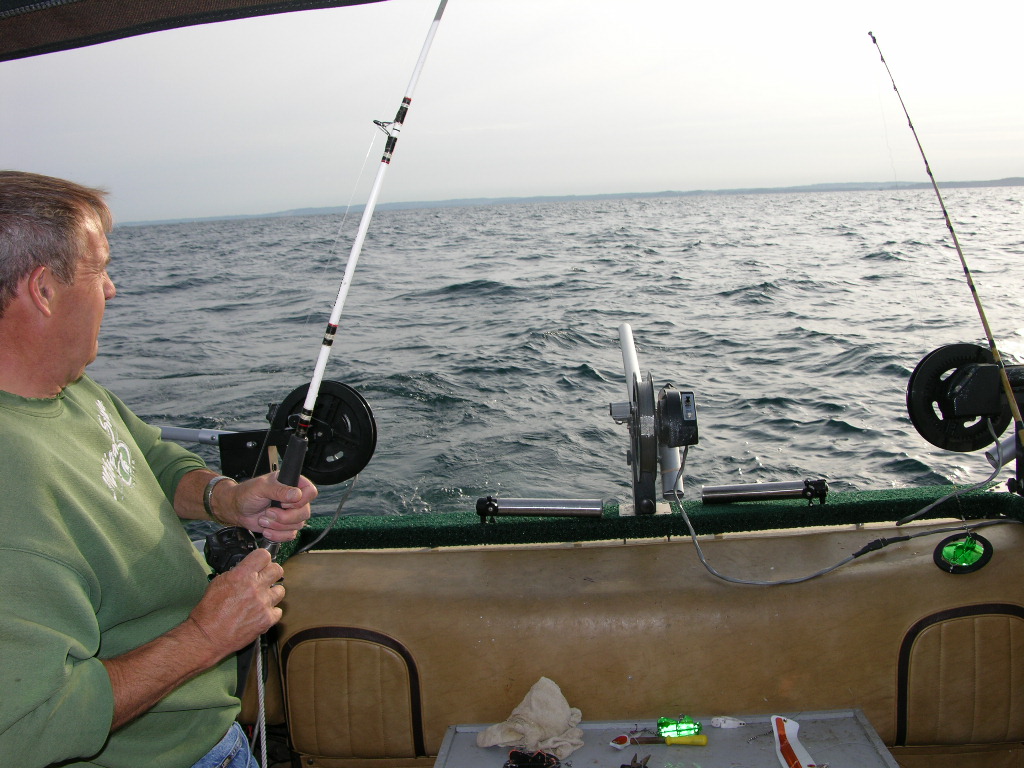 The wind was on the build. John J was diligently setting rods. Being only two of us onboard,