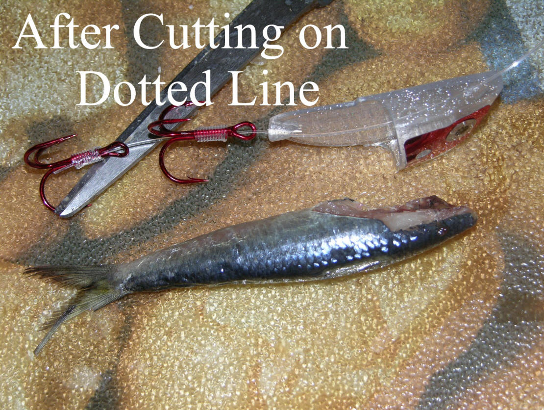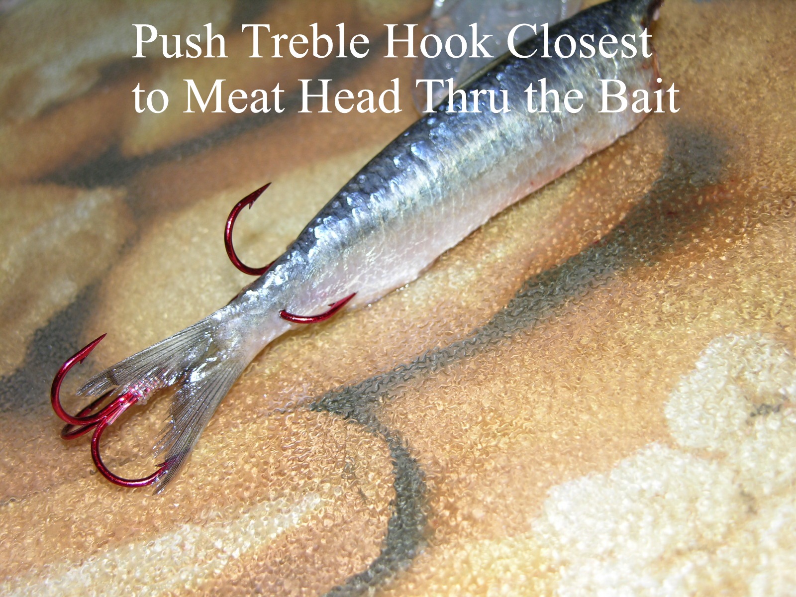 looping roll. Final tweaks and visual tips that guarantee success! If one picture is supposed to be worth a thousand words, then my short movies will speak volumes. Whole bait is very EZ to run. The above steps can have your bait in the water in less than 30 seconds. Whole bait is always more readily available than commercial strips and offers a double sided more natural looking presentation. As demonstrated in the below videos with fishing