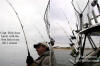 www.michiganangler.com/2013_New_Tackle.htm First set of the trip, you might have to help the line go out by pulling line off the spool by hand. After the mono is thoroughly wet, re-setting lines is a heck of a lot faster and easier as water drag takes over. Once mono becomes saturated, it's a lot faster to let out a 100-125' of line with the help water drag, wet line provides. Specific gravity of monofilament changes when it gets wet. This can effects how deep your lure/spoon goes too. You'll notice the added water drag of wet mono second time you reset lines. Let's talk about time efficiency. Say you have 2 persons aboard, MI regulations say you can use 6 rods. That means 600' to plus 700' of string that needs to be played out. Depending on how far you're dropping your lures back. If you're using big boards? There's the task of sliding the line down on the tag line ...out to the planer board. It's big help to have boat speed on the hot side to create more water drag. Always keep the lines being set separated & work with your fishing partners as a team. Setting Lines OK, now that you're armed with a pile of knowledge. Let's take it a step further and fine tune setting lines. This begins with a quick visual to make sure the lure is working, not fouled when it first hits the drink. If you're using the "big" boards and not inlines, it helps keep the boat speed on the hot side. Let's say, your desired troll speed is 2.5 mph, Bump up the speed to 3.5 mph to get lines in the water faster. It takes too much time to let out 100-125' of line, hook it to a release, then clip it to the planer tow line, get it to side down the tag line, if you're on the slow side. The faster your spread is set, the quicker the party begins. A word of note: my preference is the big boards. But this is a matter of personal preference, because I rather go direct drive to the fish and not have an inline board to deal with. Done it both ways and this depends on what you're most comfortable with. "Used to be," inline planers would produce more fish due to the little boards imparting more lure action as they skitter along. The game changer is my Lexan™ (plastic) Salmon Buster™ spoons that have their own erratic action built in. There's no metal spoon on this planet that darts, dives and changes direction like mine! Click a video that proves this reel-fact! If you're using the "big" boards, make sure to use 200# test planer board line and NOT the 130-150# test that comes standard on most planer board reels. Breaking a board off is big time grief and causes lost releases and a mess from hell. After a few seasons, reverse the planer board cord. Put the used stuff on the bottom of the spool. Reversing planer tow line brings newer, unused line on top. Fluorocarbon, or Monofilament Line? In most cases this is going to be clear open-water trolling with the exception of April shoreline trolling for Brown Trout. Nix the 25-30 pound test goat rope used for attractors and consider 15# test. You can get by with 20# for a mainline, then tip down to 15# leader from the keel sinkers I highly recommend to the spoon. Fluorocarbon can be a great choice for those believing it's invisible to the fish. Personally, I don't know. But if the hype is true, but anything that adds confidence to your program? ...go with your gut. Caught with both regular mono and fluoro and can't verify one works better than the other. Wind resistance is another factor that influences the line you use. The thicker the line diameter, the harder it is to get the line to slid down the tag line of larger boards. Wind effects inlines too, but to a much lesser extent.