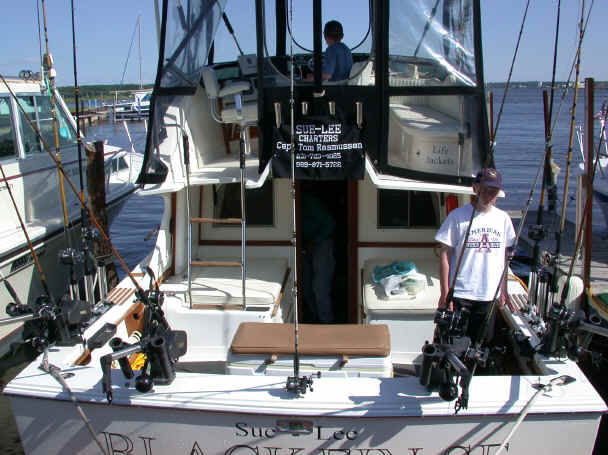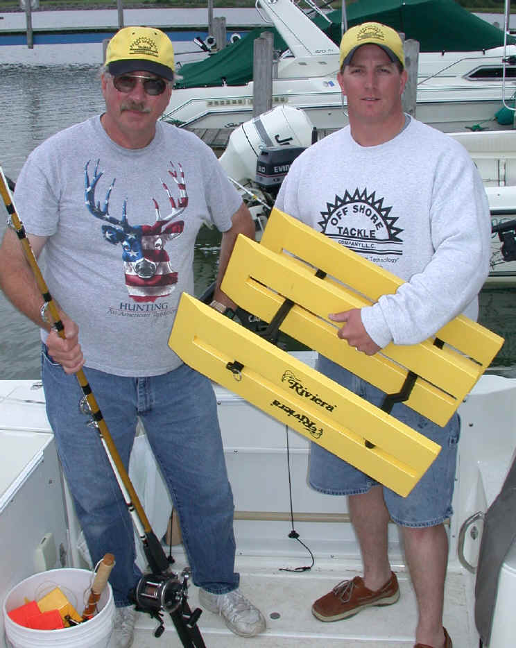 Seas were running at good solid 4 to 5 footers, so we postponed today's event until 8/12/03. I'm not into fishing in lumpy stuff a-at-all! Me trying explain and show my systems would have suffered. My seminar guests Jerry, Chuck, Kevin and Jeff would not have received fair dollar value for the know-how to be