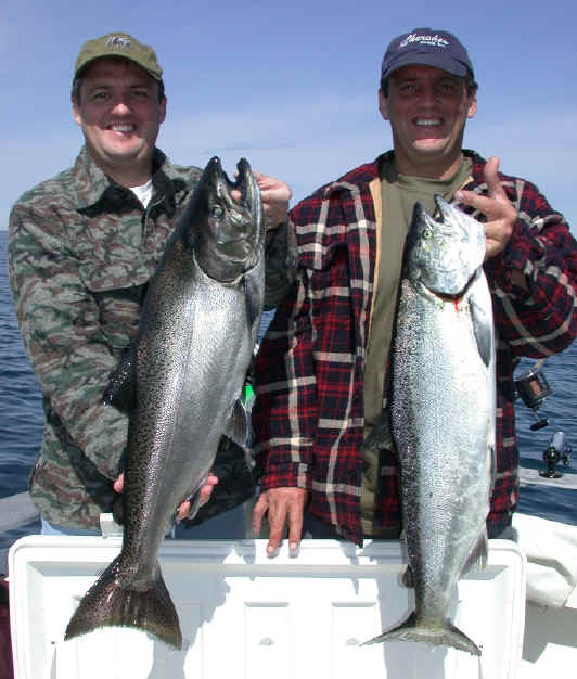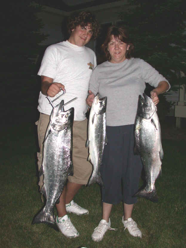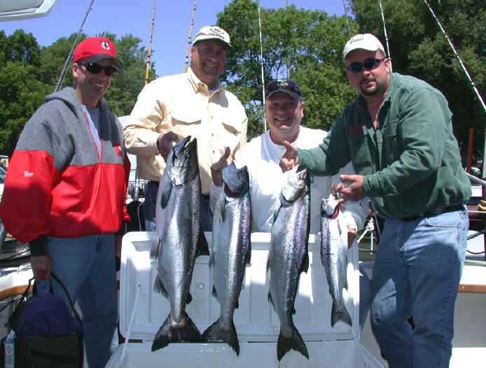 before I updated the website this last evening. Manistee still has pretty decent fishing for Kings in the deeper waters off the shelf. Look to 250 to 400 feet to find the Salmon. I heard from a boat that fished 4 hours for 12 Kings on 6/3/04.
