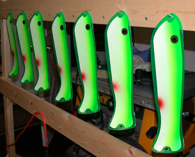 Getting caught up and building up my stock of the "Reel-Flashers" is gonna be my job for about the next 3 weeks. I'm finally getting some breathing room and have about 2000 in stock now. Hopefully, once the attractor season is here in July and August, I'll have enough product to satisfy demand. Tuna time is on