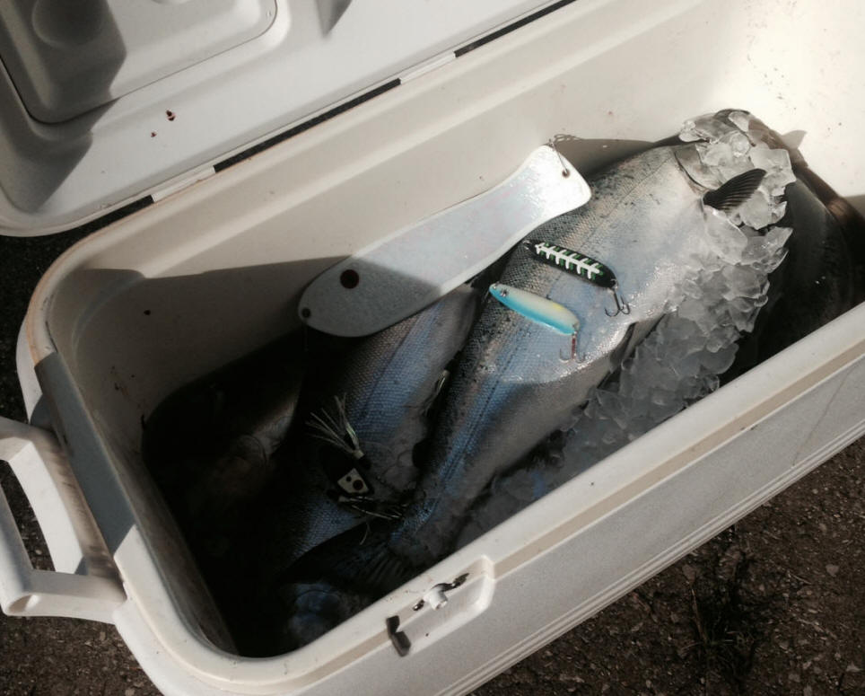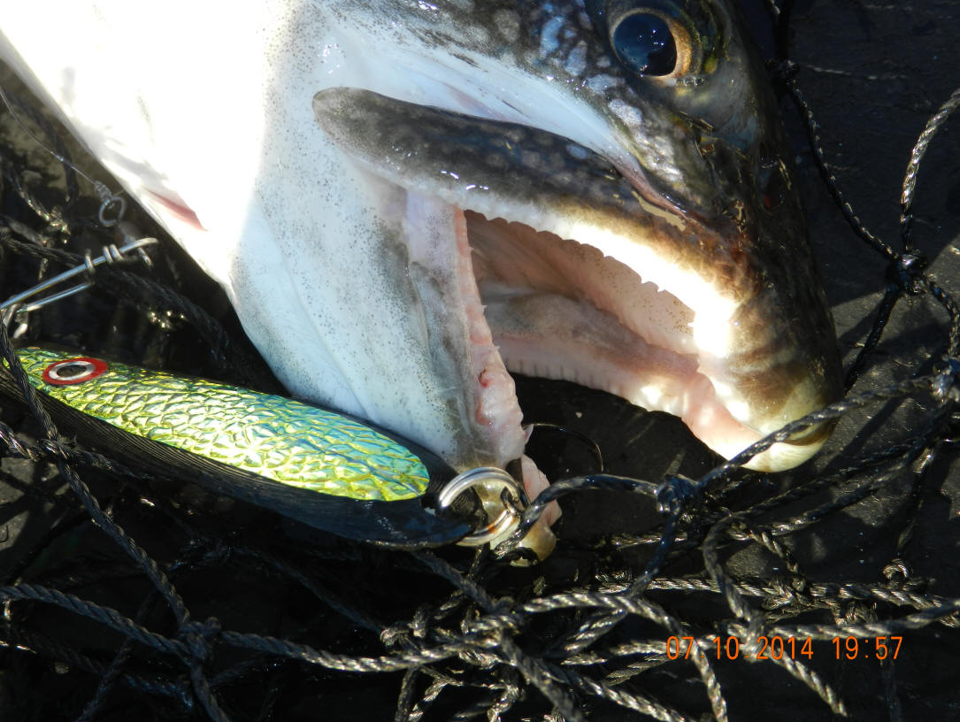 V3.5 TH 4.0 first time in the water on 7/4/14 we hit a double header around 8am. So, I knew right away we were onto a design that showed great promise. Big deal about a double header? ...not really. But in this case speed was 2.5 on the first hit and 1.3 on a dead slow-whoa troll while fighting the first King on a diver. Then, rigger went off while we were barely moving for trolling speed. The goal of having a spoon that works in a sweet spot from 3.0 mph to, at, and below 1.5 mph was verified and was on the right track in the early development stage. This was an alpha epiphany for yours truly! Performance on new Salmon Buster™ Lexan Spoons are off the chart when it comes to slower trolling speeds. Lexan, or plastic used is same as bullet proof glass and has a clear leg up in this area. Brass, the traditional choice in spoons in about a .030 thickness. Brass weighs 4 times as much as plastic, but my spoons are over twice as thick. End result is my spoons are about weight half as much. Salmon Buster spoons DO NOT stall out when you slow down to fight a fish, or allow traffic to clear. Having a spoon that works at slow, medium, and fast trolling speeds is one helluva a tremendous bonus. Especially, when the fish go deep when faster trolling speeds are totally out of the question. Due an exponentially increasing angle, or rigger wire carry back, or blowback the deeper you send the riggers down. Ground Zero Since July of 2003, my only method to fish was pulling meat. Although, I ran a lot of spoons when I was a charter skipper (1983 thru 2003) this was like going to another galaxy in 2014. OK, I had no problem remembering what used to work, but that was back then, not now? Coming up with color patterns, or selections was a blank slate. This led to old favorites like the Yellowtail and Bluetail proving their worth again. Along with more new current colors in my flasher/meat rig lineup, being Black Mamba, Krystal Killer, and SUV that let light transition thru the body of the spoon. Something that NEVER can be done with traditional solid metal bodied spoons! Next to conquer was preferred speed and having a spoon that would entice fish to hit from 1.2 to 3.0 mph. Speed is always a perplexing issue, but found 2.0 to 2.6 is where we got most of our bites and some between 3.0 to 4.0. Speed means underwater signature and how much water is being displaced, causing a fish's lateral line to become involved in the attack and feeding mode. My new spoons as proven in the videos move a lot of water by darting, diving in a constant ever changing more lifelike direction. The 4.0 and 4.65 have their own unique action so unlike ANY regular metal spoon that just go straight and just wobble. Fished with my home built 3D printed spoons from May into October 2014. There were various sizes and shapes tested. Version 5 is what went into production. The good news is the V5 4.65 is that it got bit 100' down and the V5 4.0 took fish at 90' down in what's normally attractor territory. So, it's a given this spoon displaces enough water to have a large underwater signature no matter what the depth is. Underwater signature is a fancy way to describe the appeal to the mega-sensitive lateral line on fish, used to home in on prey, or their next meal. Reverse Osmosis This is important when I proved spoon colors can be transferred to my line of flashers and meat rigs™ and work with equal success! Transmutated cloned the prototype spoon colors of Manistee Mojo and Icy Blue patterns into flasher/meat rig™ combos. Mojo is SUV tape on top, over a black base with a sliver, hyper holo belly. Both of these spoon colors were responsible for P15's first double header on 7/4/14. On 8/8/14 these to transplanted spoons colors to flashers and meat rigs™ proved their worth on 8/8/14 catching both Kings and Steelhead! This is a big deal for the occasional fishermen that fixes the age-old difficult issue of what colors to run. If you have a favorite, or hot flasher/meat rig color combo? ...the exact clone in a spoon choice is a total no brainer. Proven Colors This is another world first! No attractor manufacturer has ever cloned their colors into spoons before. Salmon Buster spoon colors echo exact matches to my flashers and Meat Rigs™ that's been tested since 2004. Glow colors in our ground breaking X-Glow that debuted in 2005, standard lure tape, and our industry leading super X-Glow. Our hyper-holo silver ice-chip tape is a cornucopia of dazzling patterns. Exclusive to my tackle lineup since 2011. Salmon Buster spoons come in a variety of colors. Fluorescent base colors of green, blue, chartreuse, and red. All have daylight light gathering properties. Much like fiber optic rifle sights, the edge of the spoon illuminates as long as there's light available. Proven super reflective, our hyper-holographic lure tape is a kaleidoscope of iridescent hues on a sliver background that must to be seen to be appreciated! This is the same lure tape that's on the top selling Super Silver Bullets and Super Mambas flashers, Meat Rigs™, and meat heads. 4.0 & 4.65 Sizes My new for 2015 spoons are available in 2 sizes. The 4.0 is the regular and the 4.65 would be considered a magnum by most. Unlike competitor's products, both sizes have the same wobble-wobble and lifelike darting action that's exclusive to my spoons. In the videos this darting action is plainly evident at speeds from 1.4 to 3.5 mph. The unique reel-action to this spoon is due to it's light weight, geometry, and patented reinforced outer perimeter. I can say "unique" with total confidence, because we shot side by side videos against several popular spoon configurations from 5 other manufacturers. Click for page 2 with YouTube action videos Click page 3 for instructional log |