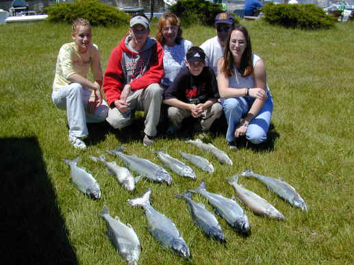 5/19/01  I had a superb time today as long friend and veteran of many "Salmon Wars," Bob Hoover took his superb family on a event today.  His fantastic wife, Rose was accompanied by Bob Junior, Mike, Kelly, and last but not least Debbie.  Mr. Hoover has fished with me since 1987 and has never went home disappointed.