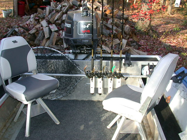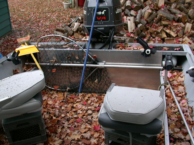 second, which is slightly below our 4 year average. 10/24/02 Cleaning the riverboat and installing new rodholder placements is on the agenda for today's chores. I'm going to try to get out an E-mail contact letter for the members of the mailing list too. I have a few spoon packs I just found and 5 spools of 20 pound Flea Flicker left. Look for an outstanding deal on these end of the season closeouts, because I don't want to carry inventory into 2003. Click here for a messy riverboat! 10/23/02 I was in a serious