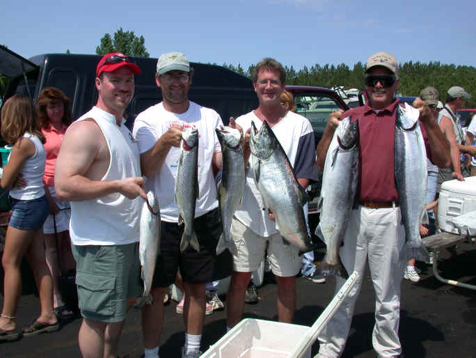 Cooperation was paramount to the winning team of "Dottie Kay" and "Bang-a-Rang" and worked out a good plan, earning in my opinion the title of "World Champions" until the 2003 competition.  Second place was taken by an outstanding effort by the team of "Capt. Morgan" and "The Office."  Also, earning the last podium spot was "SpoonTang" and "Jamie Lynn," as Ludington and Bear Lake combined to weigh-in the third best shared effort award.