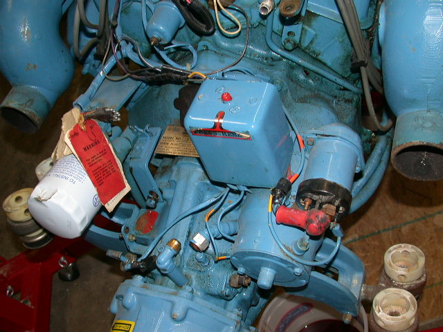 1/30/03  Spent most of the day wrenching on the new port engine and everything went well.  I've reached the point where the accessories are being installed on the newly rebuilt blocks I purchased.  This is a major job, with future of many trouble-free days fishing at stake, so I'm being painstakingly meticulous.