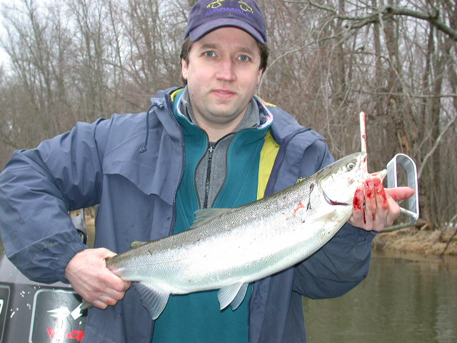 2/2/03  Brian H. has today booked for a Steelhead in the Big Manistee River.  I have no idea of what to expect.  Gonna have to play this one by ear.  The river is flowing at 1400 cubic feet a second, which is still below normal flow.  I guess we'll just have to wish for the best and fish hard.  Check back this evening for update.
