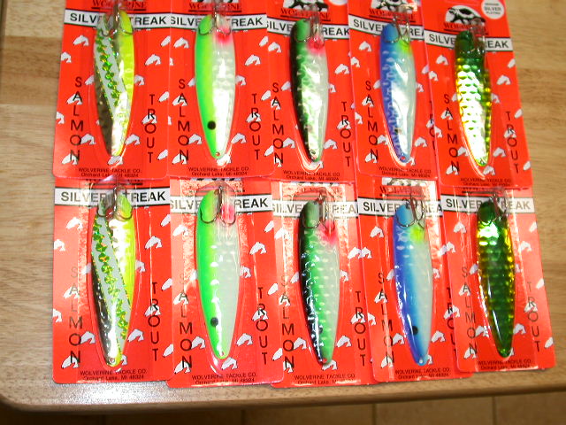 2/14/03   The Fishlander spoons are here for 2003 and ready to ship.  Every spoon in this pack is a winner on both Lakes Huron and Michigan.  These spoons mix well with attractors and will produce excellent results on all species of Trout and Salmon in our Great Lakes.  If you go into the archives, you'll see these spoons featured many times as the "Hot Lures" of the day.  I am proud of this year's selections!  I have several orders to ship, so please be patient.  Most will go out in today's mail.