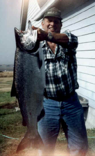 1/23/03  I received a E-mail from the man (himself) who revolutionized the way we now fish the Great Lakes, Mr. Jerry Bechhold.  He is the inventor-manufacturer of the rotating flasher.  I was informed he would do doing seminars at Cabelas in Dundee, Michigan this March on the 7th, 8th, and 9th.  Click here to see Jerry w/ a 35# cut-bait King
