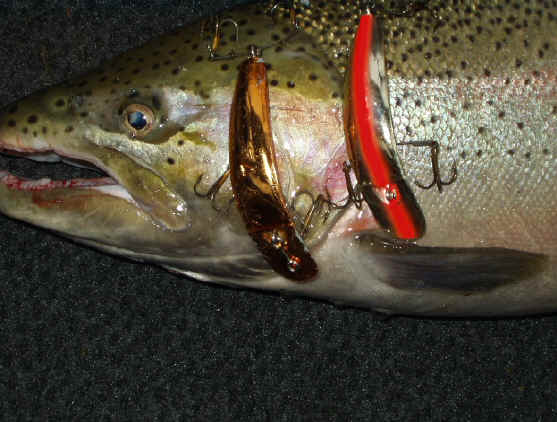 Click for Roger's personal best Steelhead        Click here for our hot lures