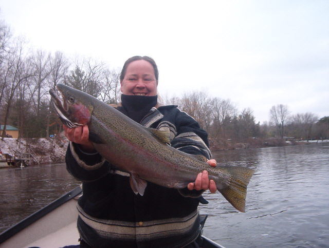 John, the Muskegon river is still producing fish at a reasonable rate. We took a good friend of ours out on Christmas day for a short run from Henning park to N. river road and picked up 2 males around 6 pounds apiece. Saturday I'm taking my brother and a buddy of his that gave up on Steelheading, cause he never caught anything I'll let you know how it goes...........Tight Lines and God Bless,