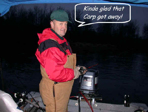 The only problem with this fish?.... was that it had golden scales the size of poker chips and the same appearance as a bulge-nosed trout.  I teasingly accused Capt. Len of losing this fish intentionally, after I told him how grand he'd look holding up a trophy-sized carp in the "angler of the day" photo.  He just grinned smugly, and went about his business very contently..........in an unvoiced, silent reply!