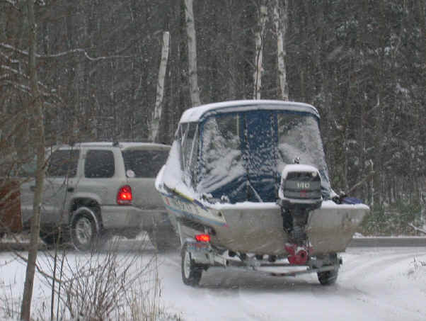 11/30/03  Where did November go?  It seems to have flew too quickly.  Early Mr. Winter is starting some probing attacks in Manistee County as snow is starting to become a daily occurrence.  Much to do is on the agenda for this week and with luck I might get it done.  Gonna try for a goodbye trip on the river with my RiverMaster jet-boat before ownership changes.  I haven't secured a deposit yet, but I know the interested party is pretty serious.