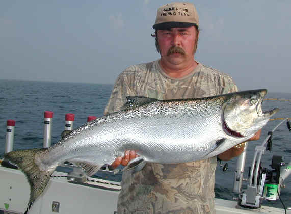 11/2/03  "Hammertime" Mike Keating:  passed away on 11/1/03 around noon.  Mike was a popular member of the message board and was always eager to share his knowledge with others.  Click here for our departed friend with a monster King.  His goal in life was to become a top tournament fishermen and he was well on his way with some top 10 finishes in 2003.  My most sincere condolences to his family, friends and loved ones.  He was an asset to this website.  I will miss him and the passion he shared for Salmon fishing.  He lived to fish, something I can understand!