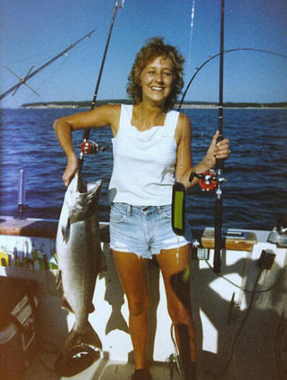 The 1979 meat table catch of Paul, myself & my wife Merlene came mostly on outriggers towing small Deep Six divers close to the pier heads in Frankfort MI.