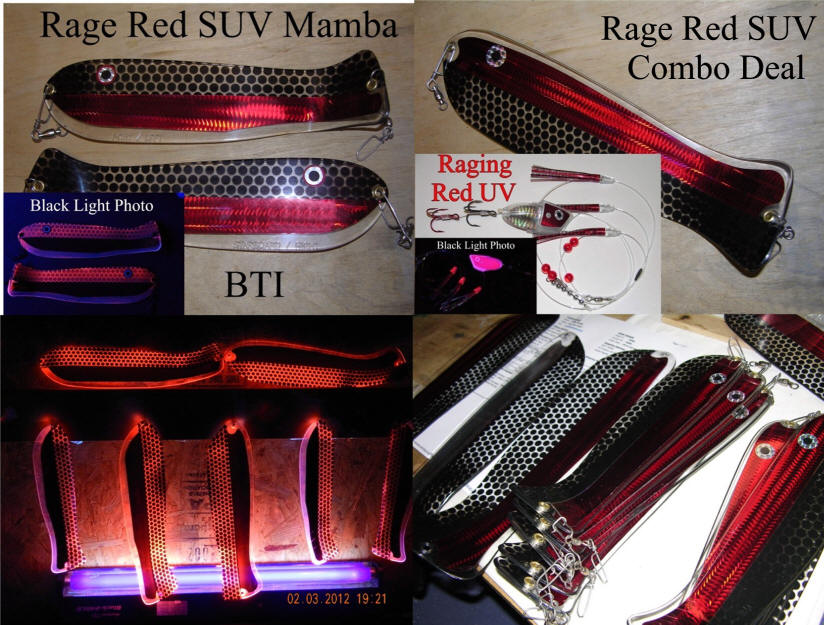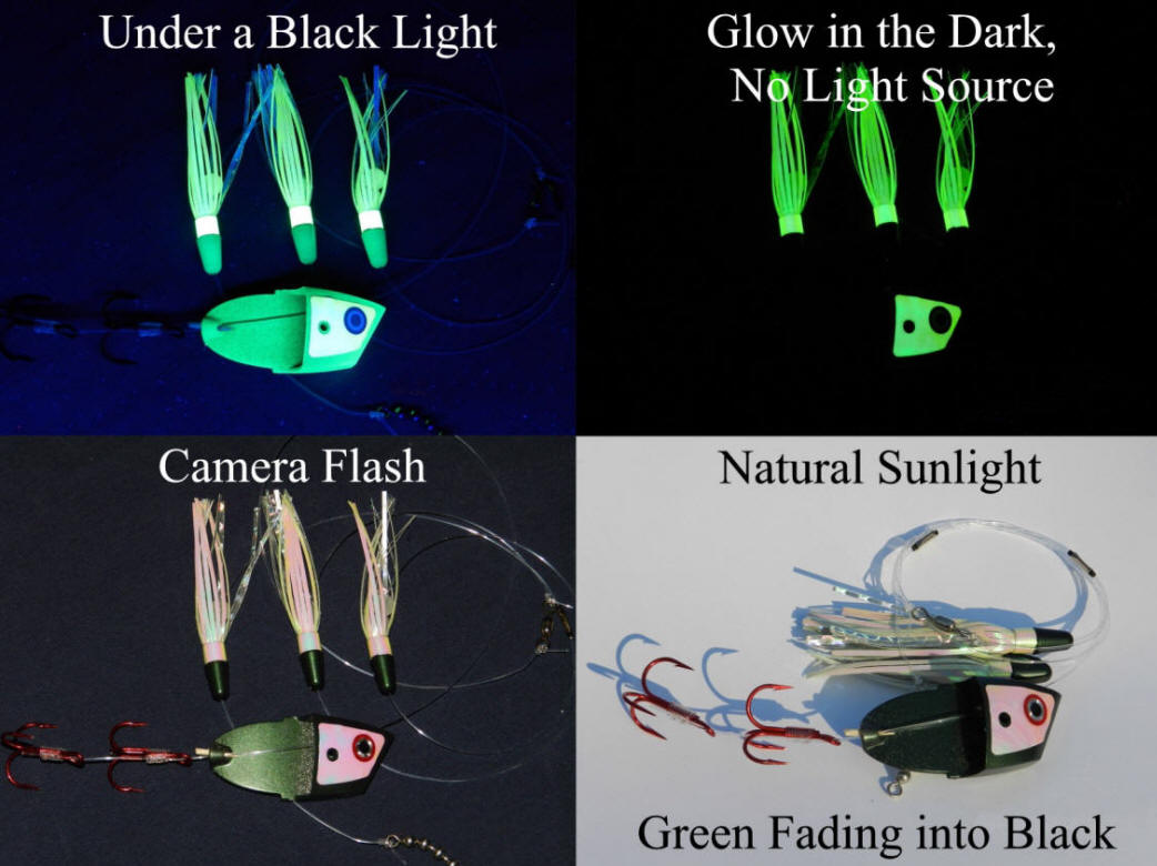 To the best of my knowledge no tackle manufacturer offers the 21st century advancements in red, blue, and green UV reactive colors like we do!