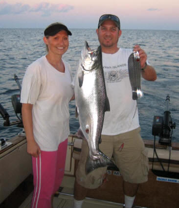 After finishing a successful April-May on lower Lk. Huron's spring King fishery, we decided to hit Frankfort.  Bait was packed in the harbor and so were the Kings.  Some to and past 20 pounds.  Not too shabby for early season reel-screamer King Salmon!