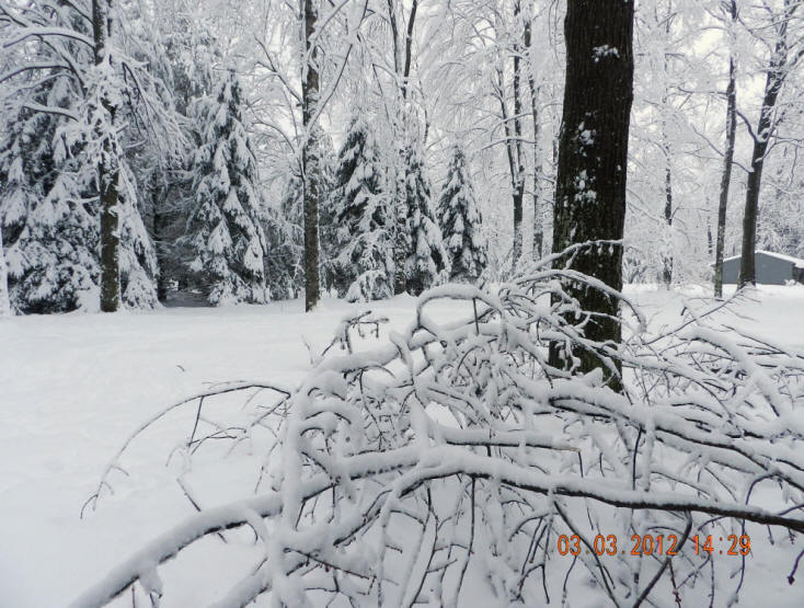 Spring like weather had me cleaning the yard from fallen limbs from last weekend's snow and ice storm that had many in Manistee, MI without electricity for days.