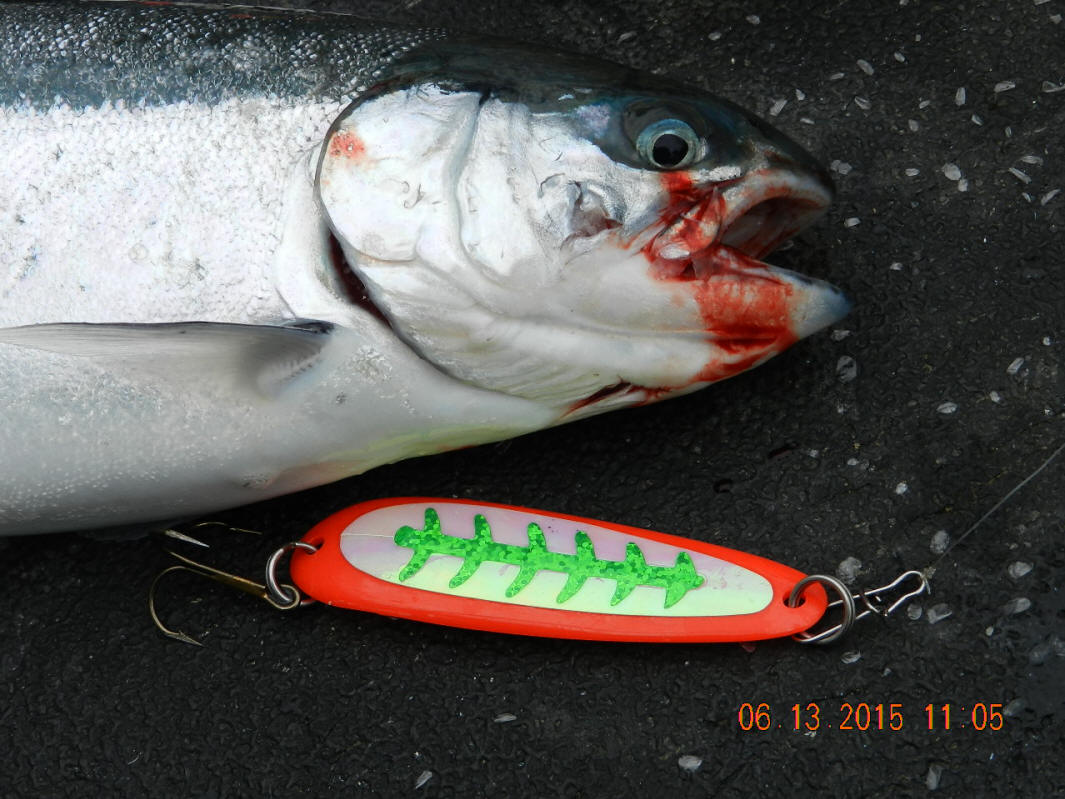 post a fish pic with a Salmon Buster™ spoon stuck in the jaw of