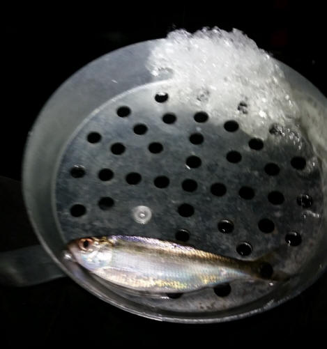 Today's featured pic is good news from the N end of Lk. MI at Escanaba.  Seems there's a lot of Alewives around according to ice fishermen.  The girth shows a fat healthy Alewife ready to provide a meal for Salmon & Trout. Click for this photo