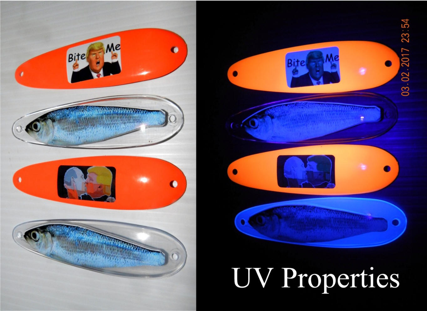 1/5/17  Introduced a lot of new tackle over the many seasons since the year 2000.  Never has there been an offseason response/demand for the reel minnow spoon.  This Salmon Buster™ spoon features a live image of a Blue Back Herring, a cousin to our Great Lakes Alewives.  This spoon was recently tested on Lewis Smith Lake in Alabama and caught stripers.  Adhesive on the vinyl image held up well during the testing phase.