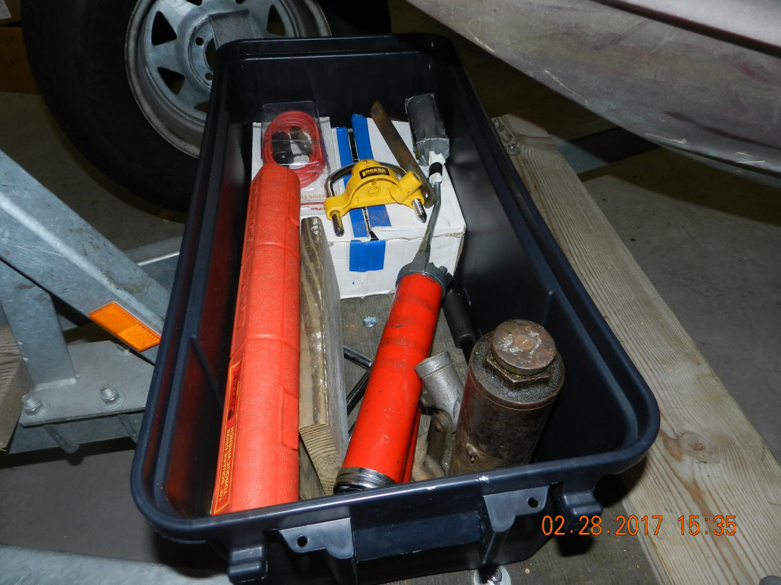 Posted a pic of my emergency roadside repair tool box.  Spare bearings, a complete hub/brake disc, jack, wood lagging and tire changing tools are in there.