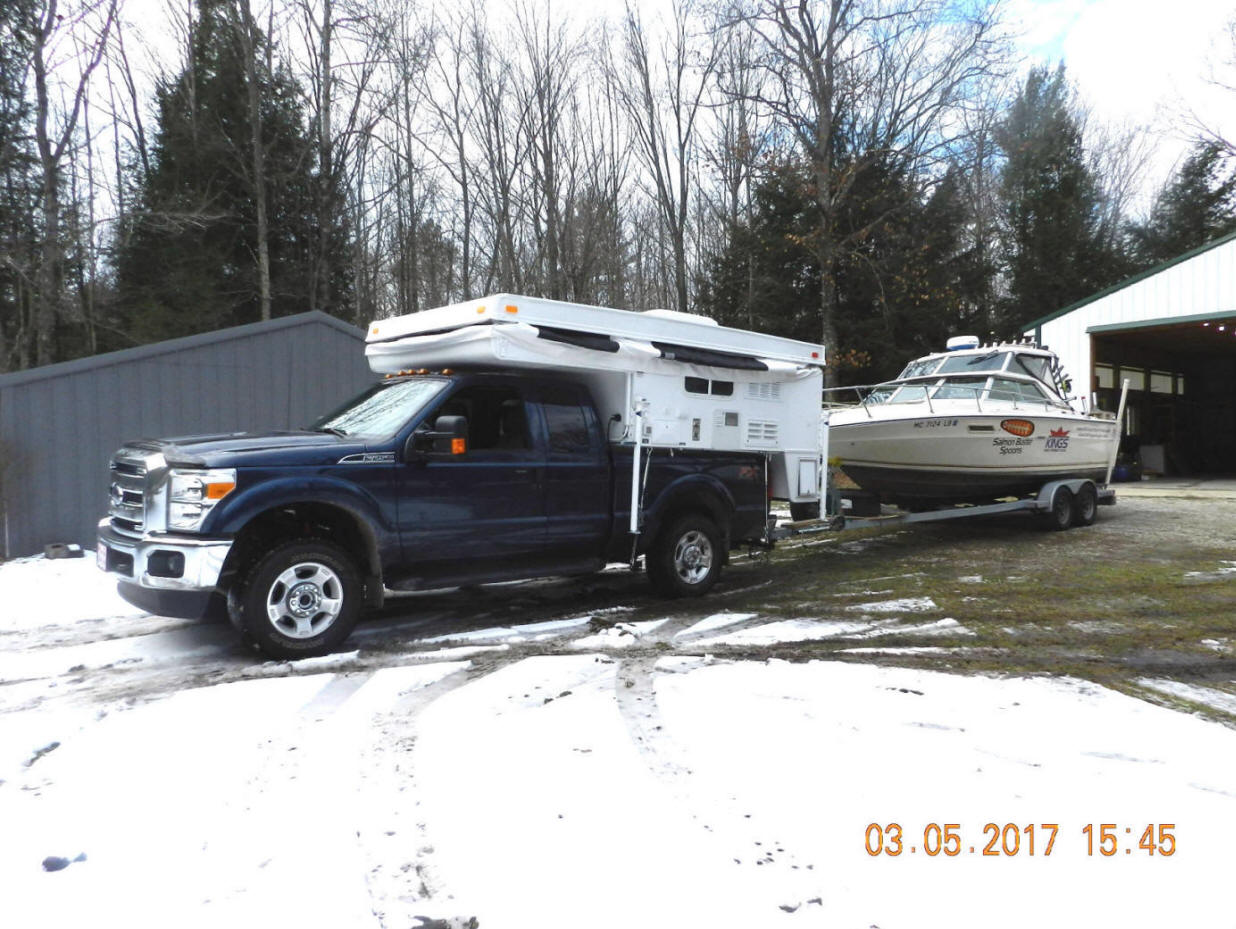 Had to go to an extended hitch for more camper clearance to boat trailer.  In my opinion, for me, this is a perfect rig for traveling that beats staying in pricy motels.
