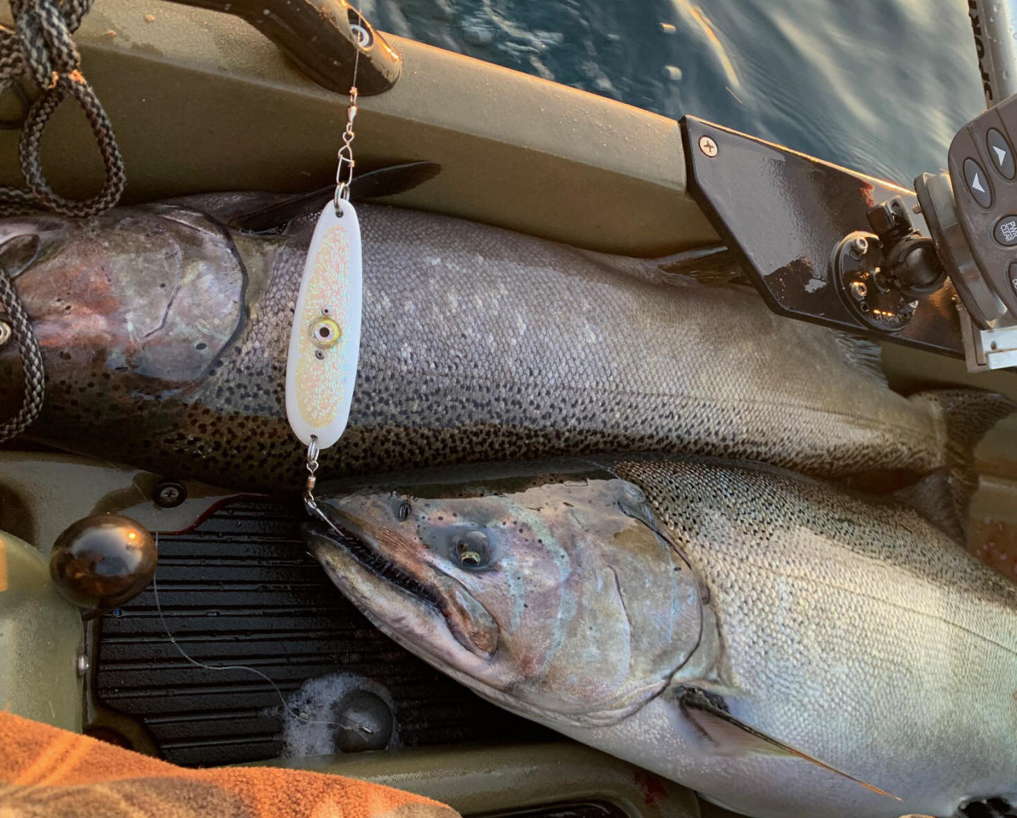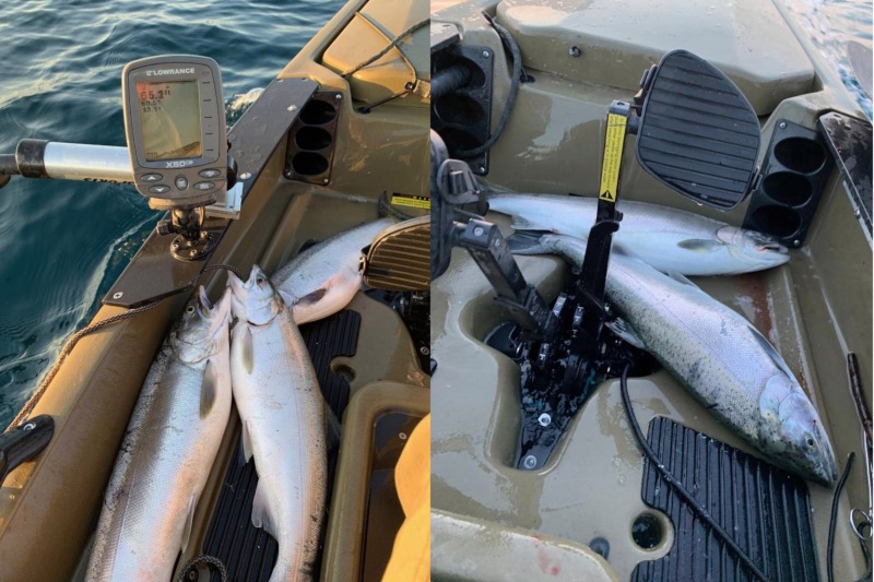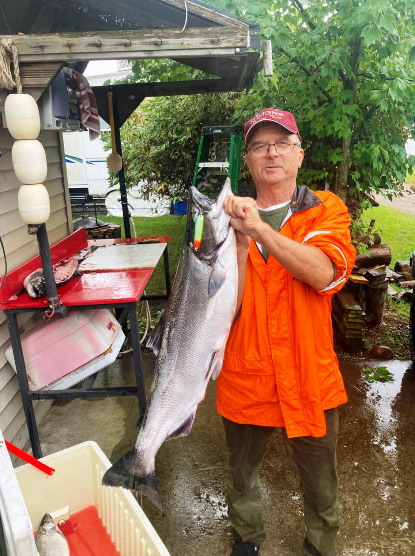 Today's featured photo is from kayak fisherman and longtime friend of the website Chuck B. from he sheltered waters in East Platte Bay.  The fish he caught came on a LED Green Glow Salmon Buster™.  E Platte Bay only get rough from a NW wind.
