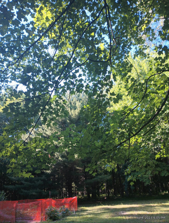 Today's featured photo of blue sky on the 4th after a long time of washed out smoky skies.  90° in the shade under my red maple tree was a sight to behold.  Heat wasn't a problem, because there was a nice breeze blowing.  Garden is doing good.