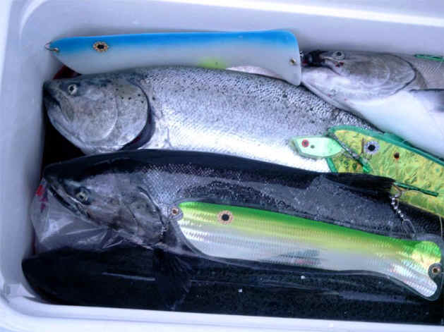 4 mph with the sweet spot being 2.5 to 2.7 mph. Cut-bait has had the largest impact, starting in 2003 at 17% share, then climbing to 24% in 2004. 2006 cut-bait swelled to 40%, which in itself is a phenomenal gain. Let's attribute this fact to: it's by far, ...the easiest to use. Sight, sound and scent as the herring is does the all the work. The meat program will also take larger fish and this factoid was evidenced in the August 2005 Frankfort GLPAA tournament. Where on day 1, five of the top ten vessels were all pulling my flashers, Super Magnum Meat Heads and herring. As things ended up on day 2, four of the top 10 teams had my stuff in the water and picked up a check. I won't get too long in the lip about the tackle I offer, but this I say with 1000% confidence. There is not bait head holder on the market presently that will out perform mine and offer the Salmon angler the wide variety of options the my meat head in Magnum and Super Magnum do! Click for Capt. John's meat heads There is one major heavy-duty draw back to using meat instead of the more traditional artificial lures. That being your box will be a lot harder to lift off the boat and you're gonna spend a ton more time at the cleaning table. Note: most of the above text was written in 2005 and might not reflect current trends that change and vary from year to year. Computers have many uses, storing data like in the above many seasons of polls is an excellent example! Some of the advantages to a meat program 1. The stuff works all