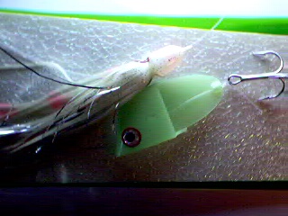 mentioned. However it is shown in a photo above. Green glo was not my number one producer, Red-clear, red-glo was. Blue-glo-blue was next. I appreciate Walters effort 4 years ago.............Capt. John King