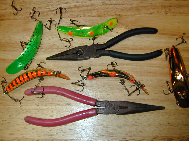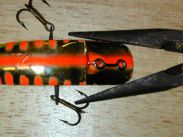 step. This part that I always get messed up is, when I turn around to grab the needle nose pliers my conception or right and left become confused, then I have to re-splash the lure to get my bearings re-orientated. Having your tuning pliers in hand can save the re-splashing it and making minor adjustments is the way to go. If the lure is absolutely "in tune" you'll see it dig straight down and not try to pull to one side or the other. These principals should be applied to the