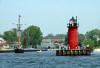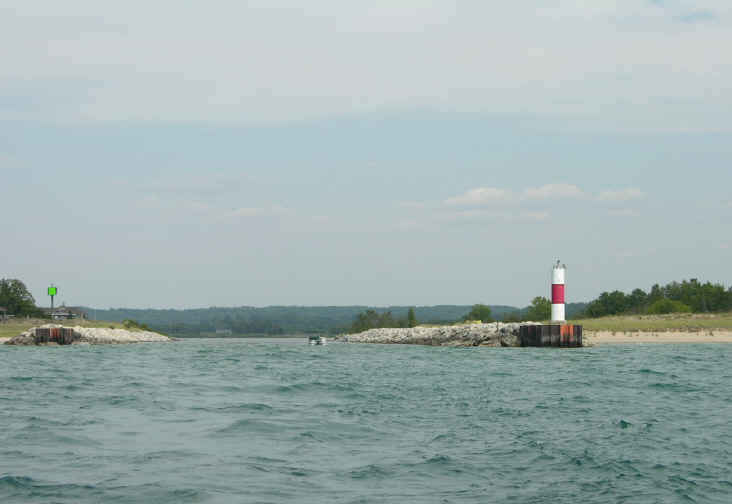 | The page is under construction and will only be finished when I have all port entrance photos of Lake Michigan. This page contains navigational tips & landmarks to go by when traveling to the southern part of Lake Michigan. This is a major journey of about 150 miles by water between Manistee and South Haven. Moved the boat south for the improved fishing Salmon in the southern end of Lake Michigan. The main body of Lake Michigan over 60 foot water depths and deeper was 38 in Manistee to 42 degrees in South Haven, except off Saugatuck where I had 44 degree water off the Kalamazoo River. On the water marina gas prices were $1.87 in Manistee, $1.89 in Muskegon and $1.99 in Grand Haven on May 3, 2003. |