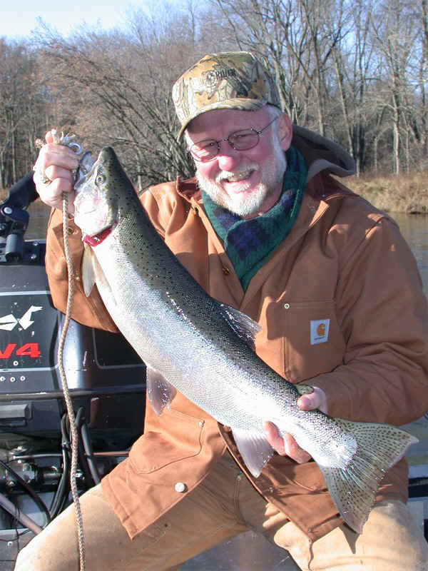 Hey, no problem!  Tom's masterful rodsmanship soon took it's toll and I was netting a decent male of about 7 pounds.  Tom is no slouch at fishing, having ran charters out of Manistee for the past 20 some years.  He definitely knows his stuff!  There's no way I can't say enough about Tom's firm grasp of angling knowledge that spans several decades.  Please let me add, Tom's a sheer joy to be around and a first class act at anything he does.  Warren tain't so bad either!