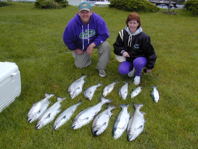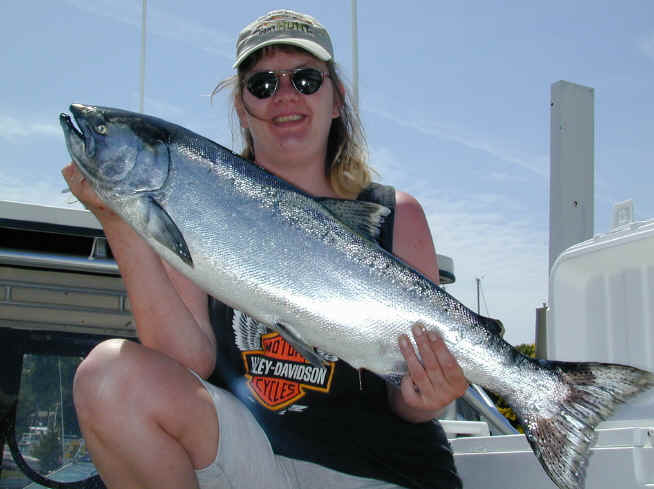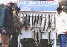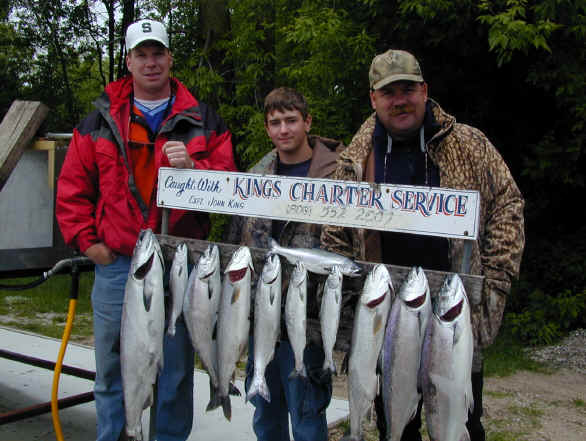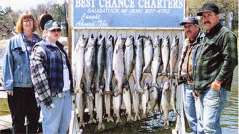 May in South Haven means fish! The Fishing here can be described as some of the best in the State, if not the best. In the past I've averaged as many as 20.5 fish per charter. In the May of 2000 we boated 10.4 fish per charter excursion Huge schools of eager to hit Chinook (King) Salmon, Steelhead (or Rainbows), Brown Trout, Lake Trout to the 25 lb. mark and the Coho Salmon will fill the box. If you've never been on charter before this is hard to beat the fast paced action available here.